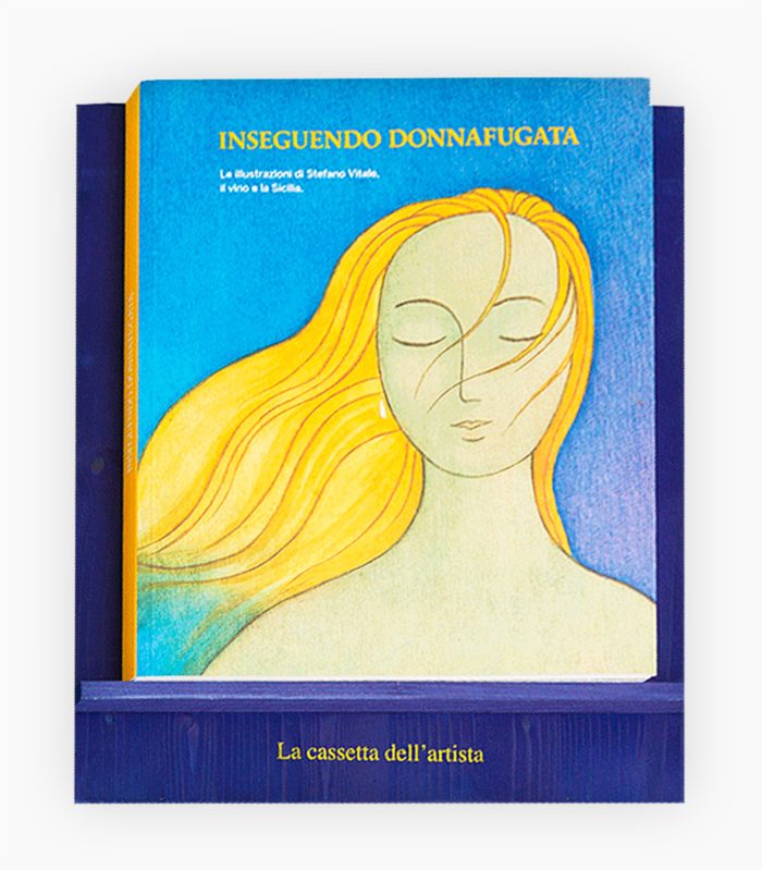La cassetta contiene il catalogo “Inseguendo Donnafugata – Le illustrazioni di Stefano Vitale, il vino e la Sicilia” e 3 bottiglie da 75cl: