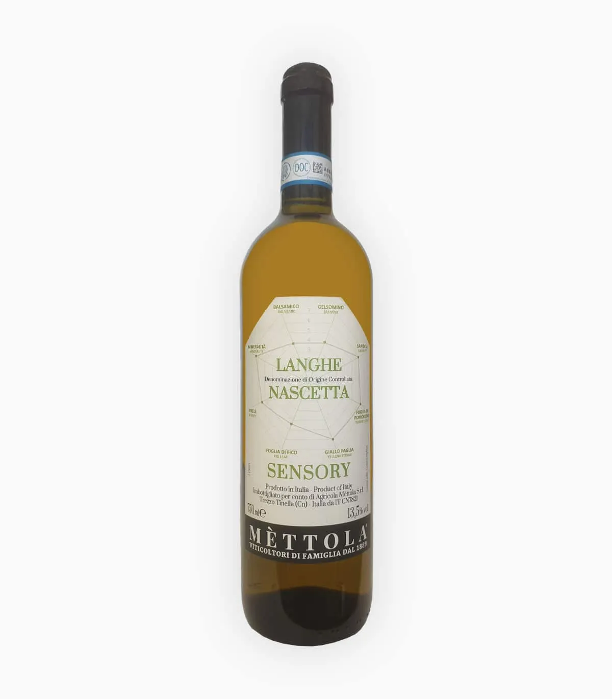 Mettola Sensory Langhe Nascetta è un vino bianco ottenuto da uva Nascetta in purezza vinificata in bianco.