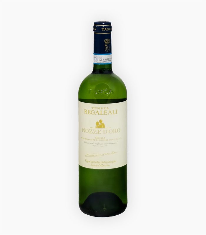Tenuta Regaleali Nozze d’Oro è un vino bianco che nasce dai vigneti storici della Sicilia centrale, su terreni calcarei e argillosi che conferiscono struttura, freschezza e mineralità a questo vino bianco. È prodotto da un blend di uva Inzolia e Sauvignon, vinificate in acciaio inox a temperatura controllata, con una cura particolare nell’affinamento per preservare la complessità aromatica e l’eleganza.
