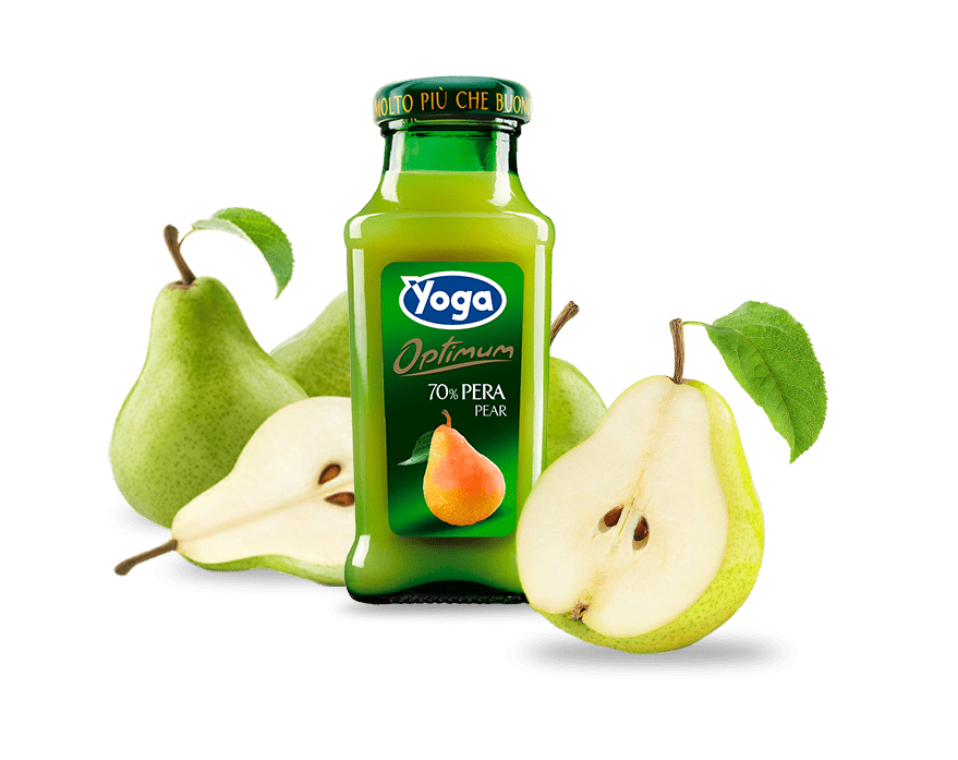 Yoga Pera è un succo senza glutine, né conservanti, che contiene il 70% di pera. Dal sapore intenso e ricco di frutta, è un classico dell’azienda Yoga ed è contenuto nell’inconfondibile bottiglietta verde.